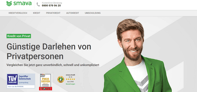 Statt auf die Vergabe von Privatkrediten hat smava sich mittlerweile auf die Vermittlung von Bankdarlehen spezialisiert. In unserem Test bekamen wir allerdings trotz eines Monatsnettoeinkommens von 6.000,- Euro für ein Darlehen über rund 10.250,- Euro kein Angebot.